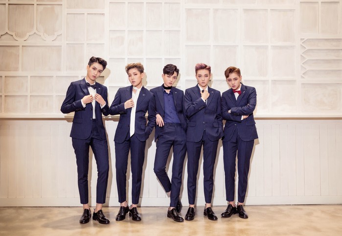 <사진, 리더 K(루커란) 메인랩퍼, ROY(안쥔시) 메인보컬. SHAWN(펑시천) 서브보컬:JOEL(펑이양) 서브랩퍼. MARCO(린판)>