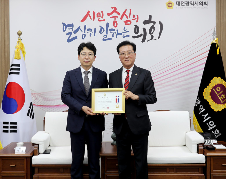 [대전 세계타임즈=이채봉 기자] 대전시의회 조원휘 의장은 18일 마라톤 정형외과 이정범 병원장을 초청해 감사패 수여 및 환담을 진행했다.