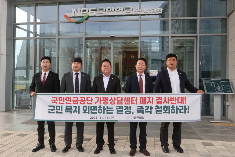 마지막으로 가평군의회는 군민의 복지권 보장을 위해 국민연금공단의 가평상담센터 폐쇄 결정을 반드시 철회하도록 끝까지 싸워나갈 것임을 천명했다.