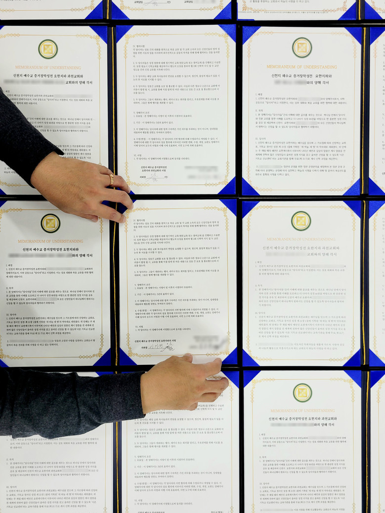 [세계타임즈 백진욱 기자] 오늘 7일 신천지예수교 증거장막성전(이하 신천지예수교회)은 125명의 국내 목회자들과 업무협약(MOU)을 맺고 말씀 교류를 진행하고 국내 최대 교단인 장로교 소속 목회자와의 교류 비중이 가장 높은 것으로 나타났다.