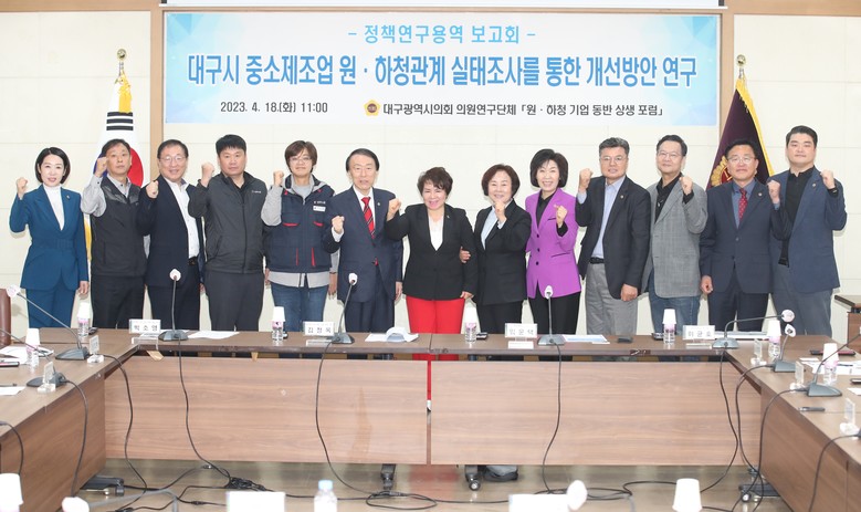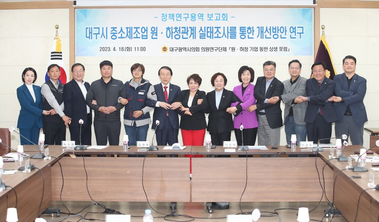「원·하청 기업 동반 상생 포럼」은 대구광역시의회 의원연구단체로 기업의 원·하청 동반성장을 위한 공생적 거래 질서를 확립해 상생 경제로 전환하는 분위기를 조성하기 위해 작년 9월에 11명의 대구광역시의회 의원으로 결성됐다.