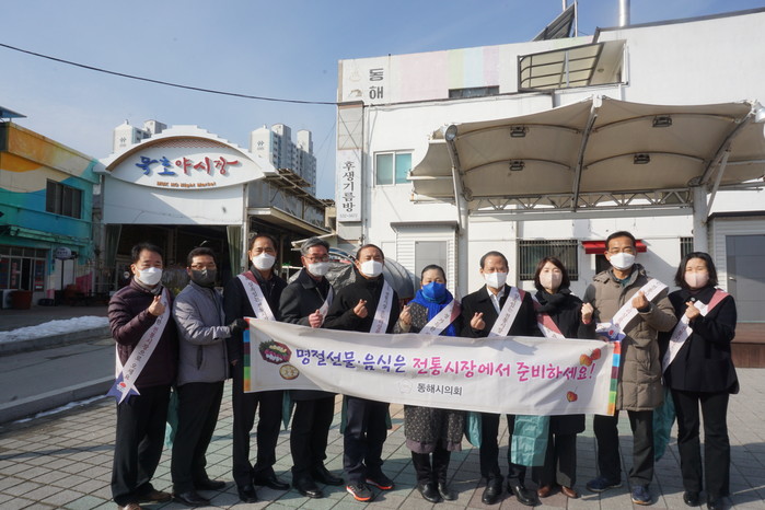 [동해시=세계타임즈 김민석 기자] 동해시의회(의장 김기하)는 27일 민족 최대의 명절 설을 앞두고 코로나19 장기화로 어려움을 겪고 있는 관내 전통시장에서 장보기 행사를 진행하였다.