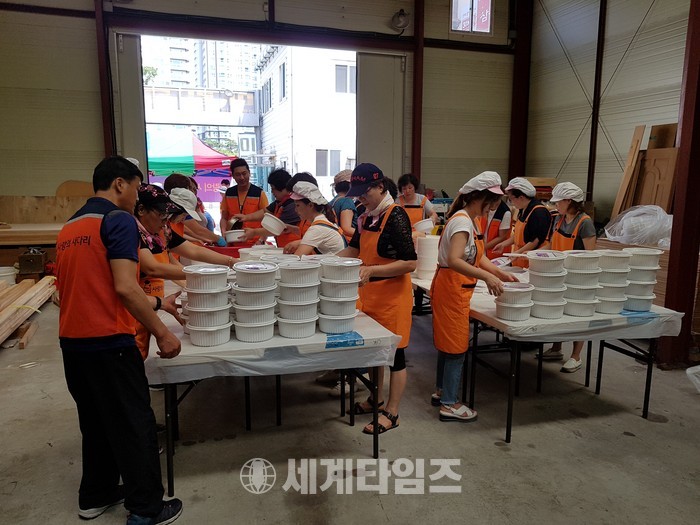 [대전=세계타임즈 이장성 기자] 5천명의 회원들이 활동하는 자발적인 SNS봉사 밴드인 사랑의 사다리 밴드(리더 이정제)는 12일 오전 9시부터 대덕구 석봉동 마림목재(대표 유희성)에서 밑반찬을 만들어 대전시에 거주하는 206명의 저소득층, 독거노인, 장애인가정에 전달을 하면서 이웃사랑을 전했다.