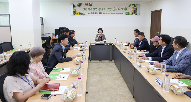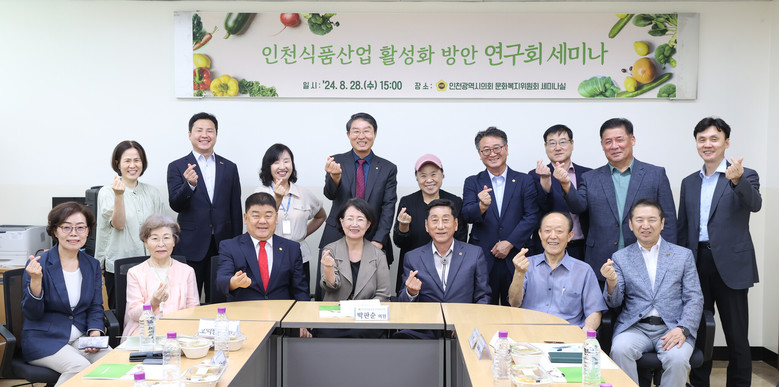 [인천 세계타임즈=심하린 기자] 인천광역시의회 의원연구단체인 ‘인천식품산업활성화방안연구회(대표의원 박판순)’는 28일 문화복지위원회 세미나실에서 박판순(국·비례)·이봉락(국·미추홀3)·박창호(국·바례)·이순학(민·서구5) 의원과 인천식품진흥정책위원회 위원 등이 참석한 가운데 인천 식품산업 활성화 방안 세미나를 개최했다.