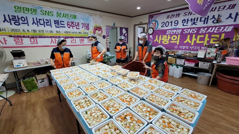 [대전 세계타임즈=이채봉 기자] 대전광역시 SNS 일만명 봉사단체 사랑의 사다리 밴드(리더 이정제)는 31일 오전9시, 대덕구 중리동에 위치한 사무실에서 양파초절임 100개를 만들어서 대덕구 송촌동 행정복지센터(동장 김태훈)에 전달을 하였다.