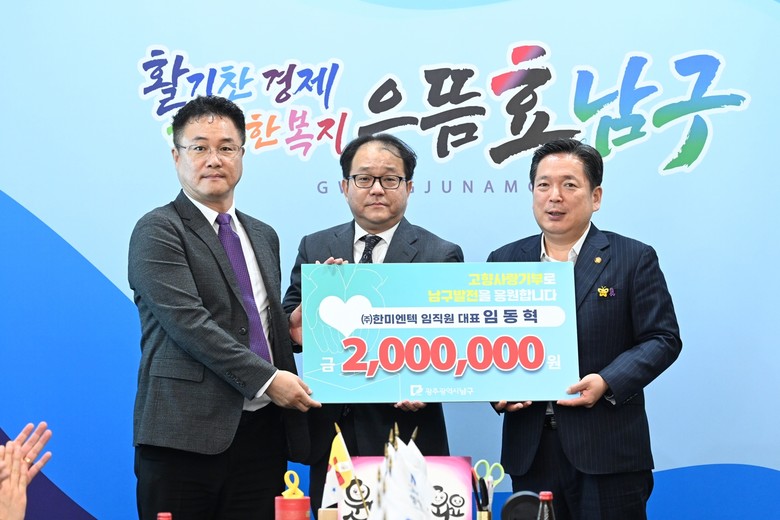[세계타임즈=남구 손권일 기자] 광주시 남구는 8일 구청 열린민원실에서 남구 발전을 위한 고향사랑기부금 전달식을 가졌다.