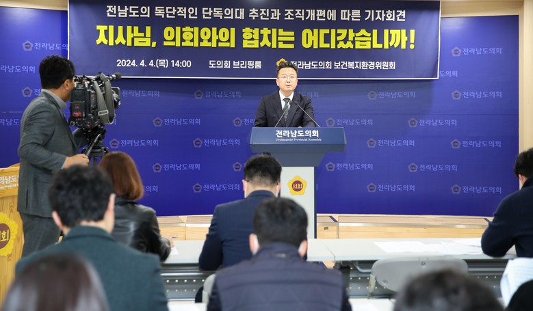 또한 지난해 11월 출범된 ‘전남 국립의대 유치 범도민추진위원회’에서 도의회의 참여를 배제한 점, 최근 보건복지국 소속 의대유치추진단을 자치행정국으로 이관한 점 등 의회와의 협치를 외면한 김 지사의 행보를 비난했다.
