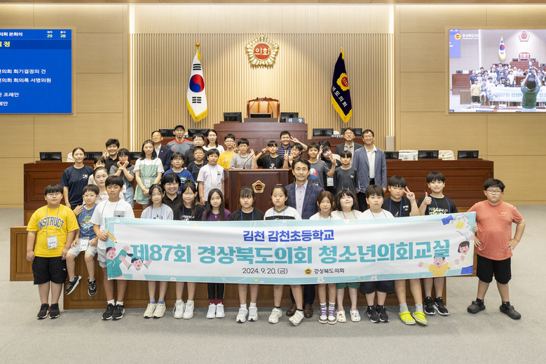 [경북 세계타임즈=한윤석 기자] 경상북도의회(의장 박성만)는 9월 20일(금) 본회의장에서 김천 감천초등학교 학생 30여명이 참여한 가운데「제87회 경상북도의회 청소년의회교실」을 개최했다.