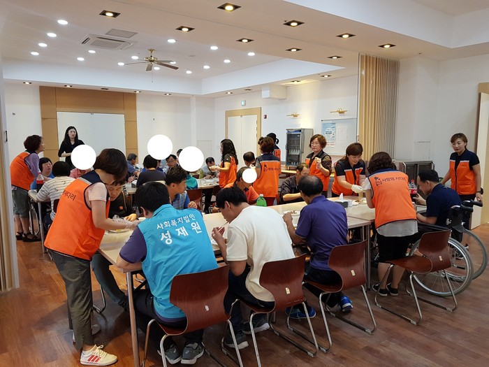 [대전=세계타임즈 이장성 기자] 7천명 SNS 대전시 봉사단체 사랑의 사다리 밴드(리더 이정제)는 3일 오후3시 유성구 용계동에 위치한 성세재활자립원과 성세시온의집의 중증장애인들에게 통닭봉사로 우리 사회의 따뜻한 사랑을 전달하였다
