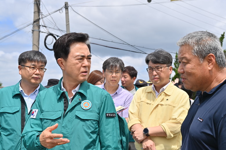 박정현 부여군수, 이용록 홍성군수, 이완섭 서산시장 등과 각 현장을 찾은 자리에서 김 지사는 피해 및 응급복구 현황, 지난 주말 호우로 인한 추가 피해 상황 등을 들었다.