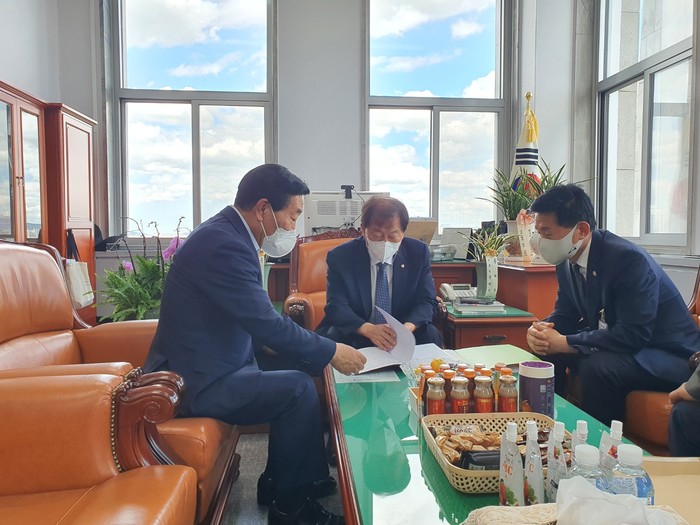 박 의장은 코로나19 장기화로 어려움에 빠진 소상공인, 서민 등 경제활성화를 도모하고 민생안정을 위한 지역현안사업의 필요성을 강조하며 국회차원의 적극적인 지원과 협조를 요청했다.