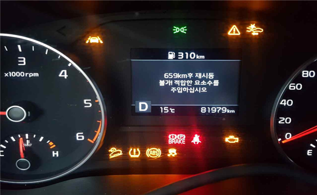 | ▲경유차량 계기판에 요수수 관련 경고 메시지(사진제공 환경감시국민운동본부) |