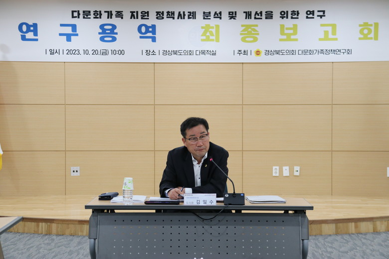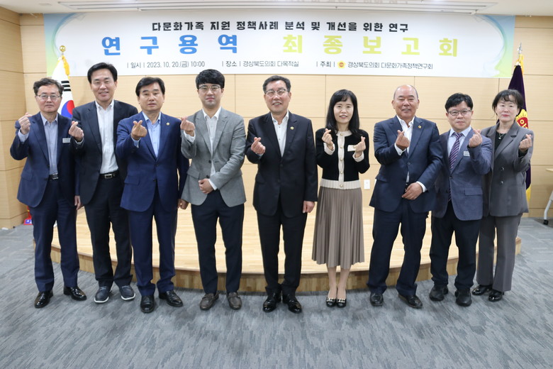 [경북 세계타임즈=한성국 기자] 경북도의회 「다문화가족정책연구회」(대표 김일수 의원)는 20일(금) 도의회 다목적실에서 “다문화가족 지원 정책사례 분석 및 개선을 위한 연구 용역” 최종보고회를 개최했다.