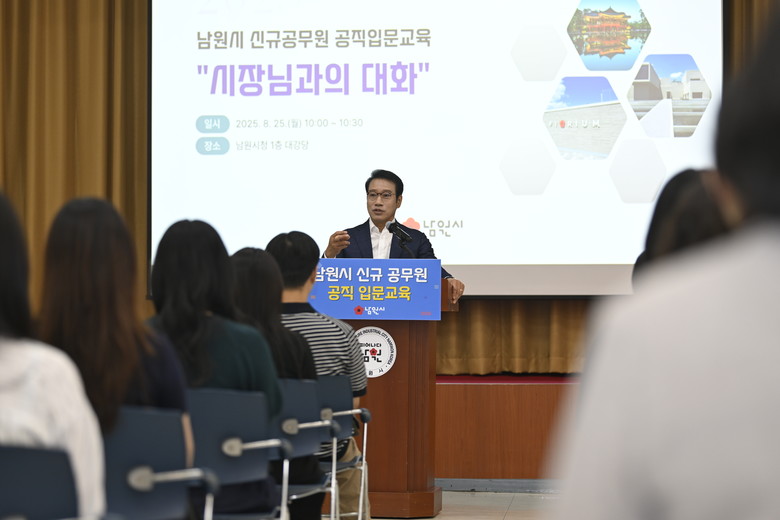 최경식 시장은 “이번 교육은 단순히 지식을 전달하는 자리가 아니라, 신규 공무원들이 공직자로서의 첫 마음가짐을 다지고 동료와 함께 성장할 수 있는 소중한 기회가 될 것”이라며, “앞으로도 새내기 공직자들이 남원시를 이끌어갈 주역으로 성장할 수 있도록 적극 지원하겠다”고 말했다.
