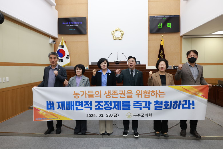 이에 무주군의회 의원 일동은 쌀 생산량 감축이 단순한 가격 안정 문제가 아니라 국가 식량안보와 직결되는 중요한 사안임에도 불구하고, 정부가 이를 정치적 이익 추구의 수단으로 삼고, 농민들의 경제적 어려움을 방치하는 행태에 대해 강력히 규탄하며 정부에 다음과 같이 강력히 촉구한다!