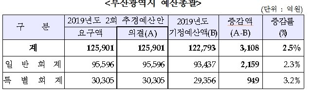 예결특위에서 의결한 부산광역시 2019년도 2회 추가경정예산안은 6일 본회의에서 최종 의결할 예정이다.