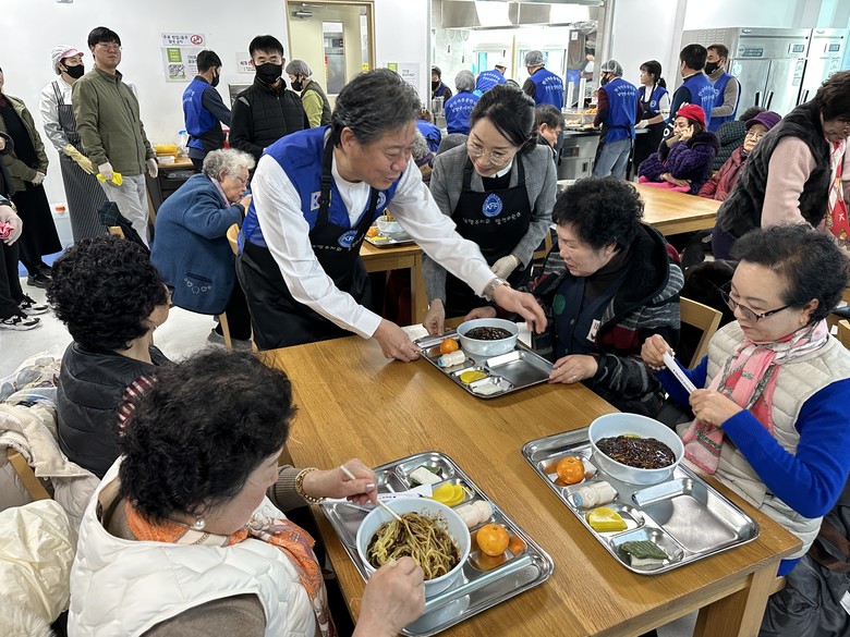 이날 현장에는 지회 회원 20여 명이 참여해 조리 보조와 배식, 어르신 안내 등 역할을 분담해 짜장면을 제공하고 뜻깊은 시간을 보냈다. 또한 주광덕 시장의 배우자인 박주영 여사도 현장에 함께해 배식 봉사에 참여하며 나눔의 의미를 더했다.