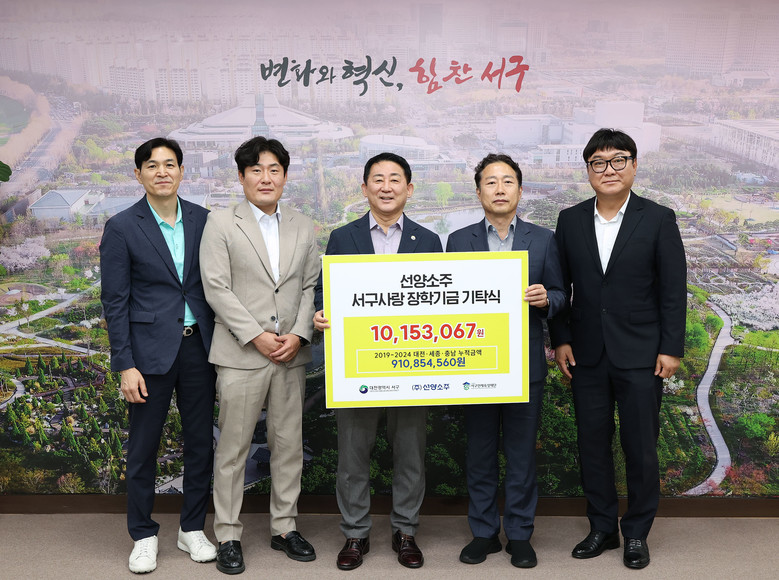 이번 기탁금은 ㈜선양소주의 사회공헌 활동의 일환으로 마련되었으며, 서구 지역의 미래를 이끌 우수 인재 양성을 위한 장학기금으로 활용될 예정이다.
