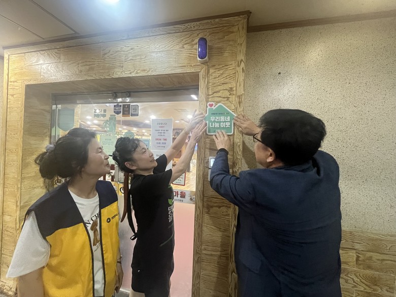 우리동네 나눔이웃 사업은 어려운 이웃을 위해 자발적인 나눔을 실천하는 업체 등에 감사를 표하고 지역 내 나눔 문화를 확산하고자 추진하는 사업이다. 현판은 협약 체결 이후 6개월 이상 정기적인 후원이나 물품 기탁을 이어온 업체에 수여된다.