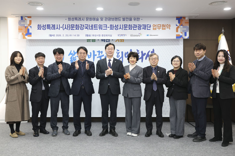 협약에 따라 화성특례시와 화성시문화관광재단은 사단법인 문화강국네트워크와 문화예술 및 관광 분야 발전을 위한 공동사업 발굴, 정책 자문, 콘텐츠 개발 등 다양한 분야에서 협력을 이어갈 예정이다.