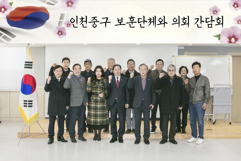 중구의회 강후공 의장 및 의원들은 중구보훈협의회 이영석 회장(특수임무유공자회 인천중구지회장)을 비롯한 상이군경회, 전몰군경유족회, 전몰군경미망인회, 무공수훈자회, 고엽제전우회, 6.25참전유공자회, 월남전참전자회, 중구재향군인회 등 각 9개 단체 중구 지회장들을 만나 국가유공자의 희생과 공헌에 대한 감사를 전하고, 회원들의 건의사항 및 활동사항 등을 청취하였다.