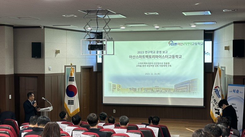 [아산시 세계타임즈=백택기 기자] 아산스마트팩토리마이스터고(교장 조동헌)는 11월 14일(화) 충청남도교육청지정 산학협력정책연구학교 합동 공개 보고회를 개최했다.