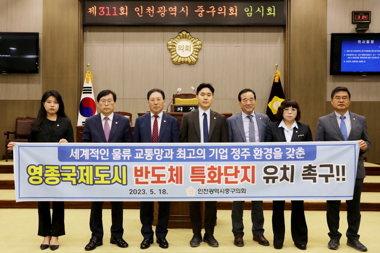 이에 우리 인천 중구의회는 세계적인 물류 교통망을 갖추고 최고의 기업환경과 뛰어난 정주환경을 지닌 영종국제도시의 반도체 특화단지 유치를 위해 다음과 같이 촉구한다.