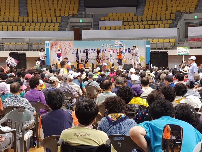 [대전=세계타임즈 이장성 기자] 대전광역시 봉사 단체 사단법인 사랑의 사다리 밴드(리더 이정제)는 15일 오전10시, 충무실내체육관에서 진행된 제15회 대전시장애인 한마음 대축제 행사에 참석하여 2천명의 장애인들과 함께 흥겹고 즐거운 시간을 보내면서 우리 사회의 따뜻한 사랑을 나누었다.