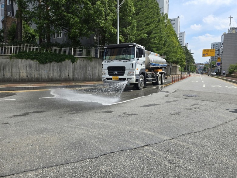 천안시는 시공사와의 긴밀한 협조체계를 구축하고 유동인구가 많은 동지역을 중심으로 주요 도로에서 살수작업을 집중적으로 시행한다.