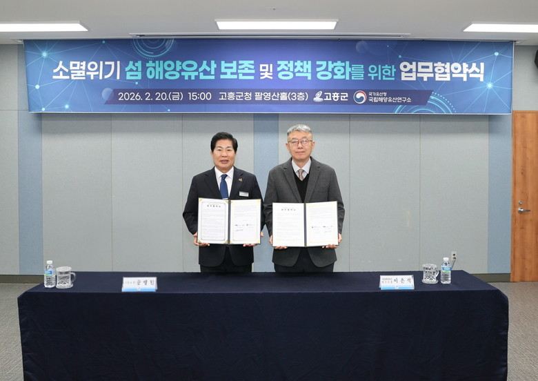 [고흥군 세계타임즈=우덕현 기자] 고흥군(군수 공영민)은 20일 군청 팔영산홀에서 국가유산청 국립해양유산연구소(소장 이은석)와 ‘고흥군 섬 해양유산조사 업무협약’을 체결했다고 밝혔다.