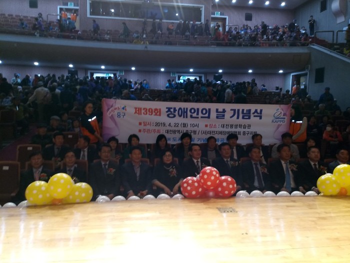 김채린 중구지체장애인협회장은 “오늘 대규모의 기념식 행사가 사랑의 사다리 벤드 봉사단체의 도움으로 성황리에 마쳤다.“면서 감사함을 전했다.