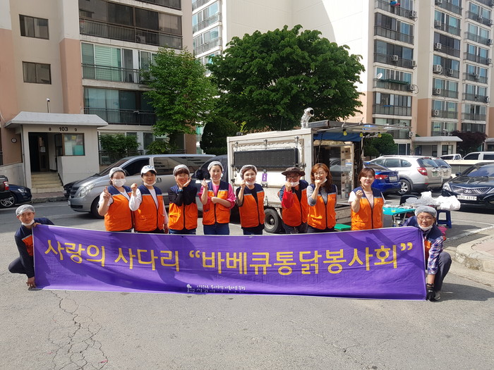 현장에서 직접구운 통닭은 우성아파트 경로당, 원대경로당과 산성동 저소득층 30가정에 전달이 되었다.