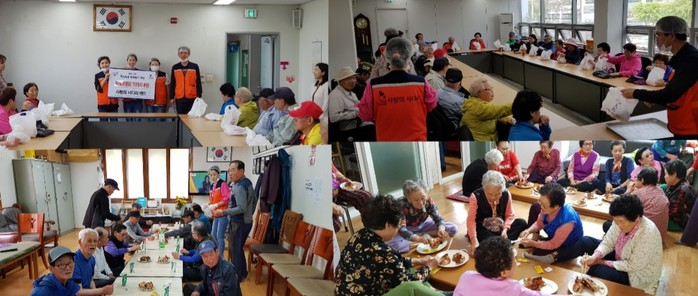신상일 통닭 봉사 단장은 “오늘 통닭을 맛있게 드시는 어르신들이 모습에서 행복과 보람을 느낀다.“고 말했다.