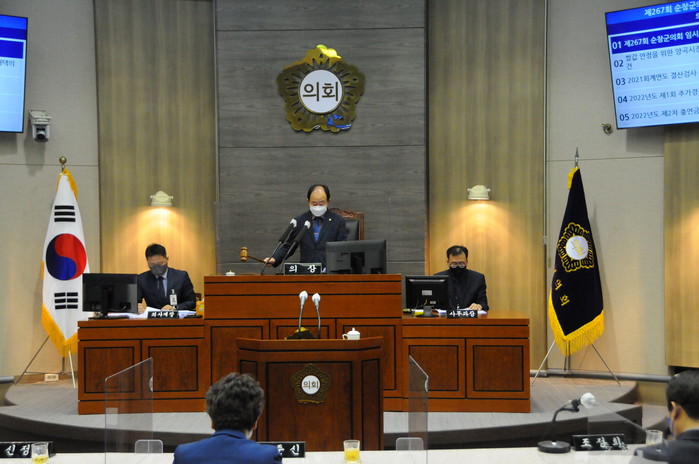이어, 2021회계연도 세입·세출 결산검사위원을 위촉하였다. 위촉된 위원은 대표위원에 이기자 의원, 민간위원에 최면식 전 재무과장, 강용신 전 의료지원과장, 김진규 전 순창농협 팔덕지점장 등 4명이며, 신용균 의장은 “예산이 적법하게 집행되고 군민의 혈세가 낭비된 사례가 없는지 세심하게 살펴주길 바란다”고 당부했다.