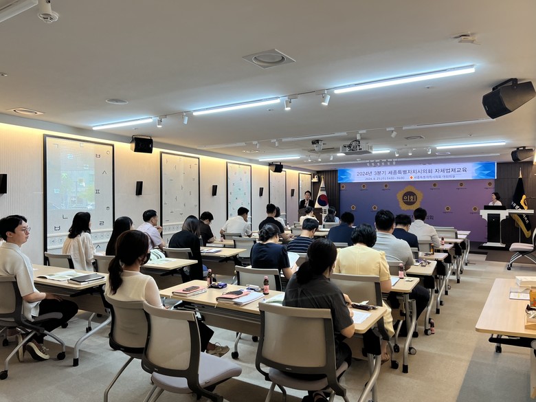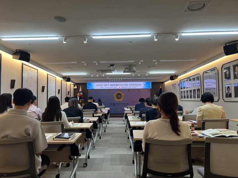 [세종 세계타임즈=이채봉 기자] 세종특별자치시의회(의장 임채성)는 21일 의회사무처 직원을 대상으로 2024년 3분기 자체법제교육을 실시했다.