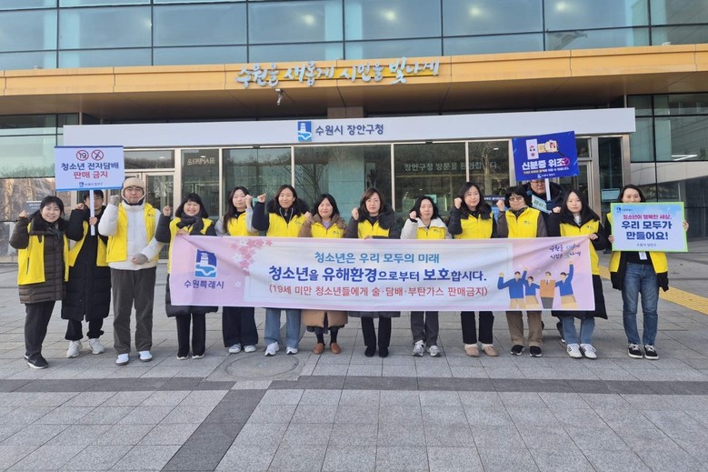 이날 캠페인은 장안구청 가정복지과 주관으로 진행되었으며, 겨울방학 기간 청소년들의 외부 활동이 증가함에 따라 발생할 수 있는 유해환경 노출을 사전 예방하고, 지역사회 전반에 청소년 보호에 대한 인식을 확산하기 위해 추진되었다.