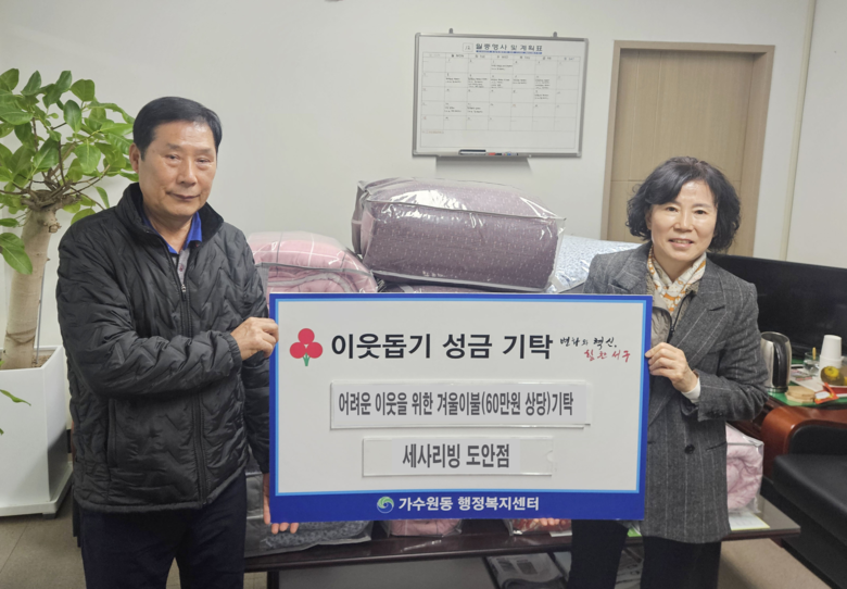 업체의 후원도 이어졌다. 세사리빙 도안점은 독거노인과 한부모 가정을 위해 시가 60만 원 상당의 겨울 이불 10채를 기탁했다.