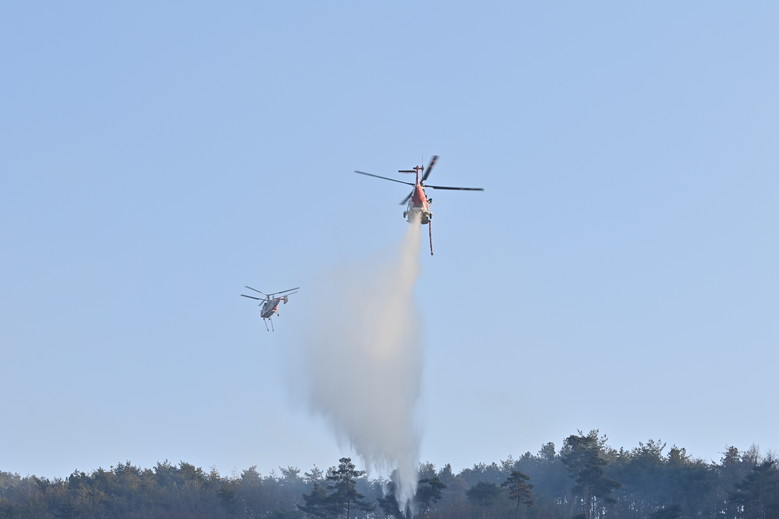 도는 낙엽 속에 불씨가 남아 있을 것으로 보고, 헬기로 산불 발생 지역에 물을 일몰 전까지 뿌렸다.