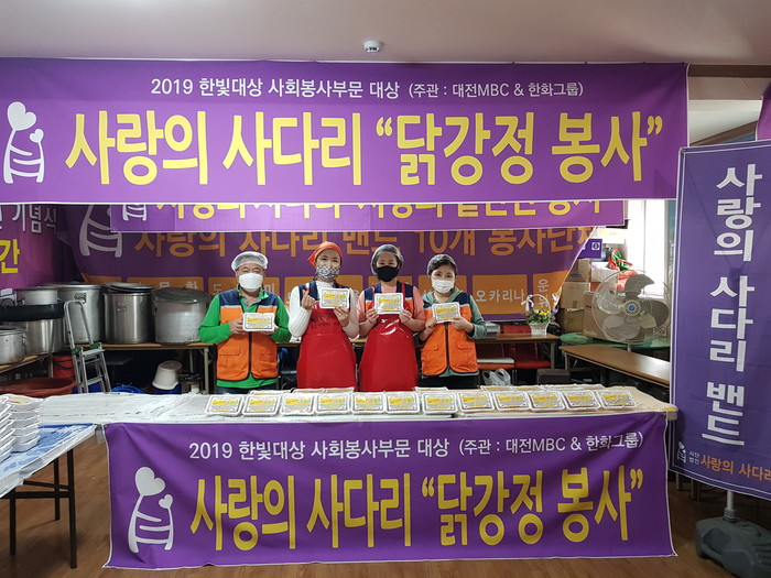 현재 9,200명으로 구성된 사랑의 사다리 밴드는 지방자치단체의 보조금 지원없이 회원들의 후원금으로 매주 2회 대전시 지역아동센터에 닭강정 봉사와 통닭 봉사로 대전시 5개구 지역아동센터에 따뜻한 사랑 나눔을 펼치고 있다.
