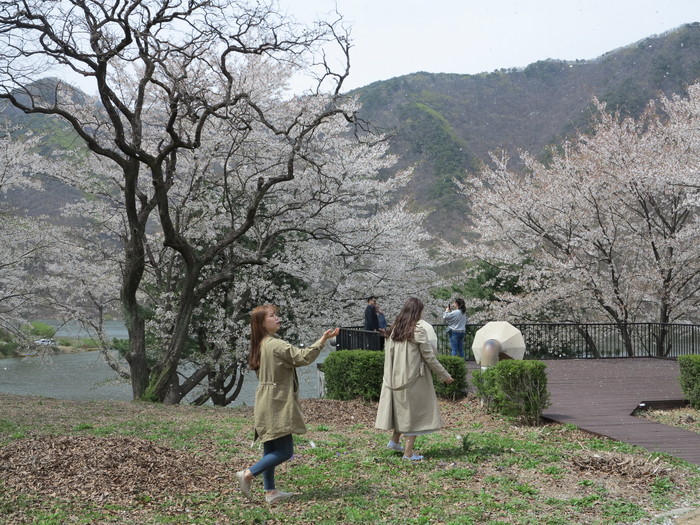 따스한 봄기운이 감돌면서 충북 옥천군 대청호 언저리에 자리 잡은 ‘장계관광지’에 나들이객이 몰리고 있다.