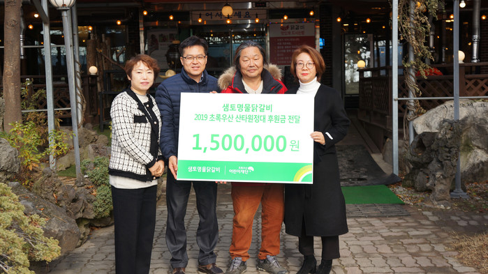 [강원도=세계타임즈 김민석 기자] 춘천 샘토명물닭갈비(대표 이상구)는 27일 11시 춘천시 샘토명물닭갈비에서 2019 초록우산 산타원정대 지원을 위한 후원금 150만 원을 어린이재단 강원지역본부에 전달했다.