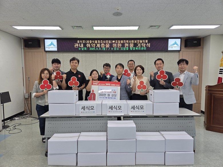 이날 기탁식에는 이기숙 도담동장과 세식모의 윤여홍 대표를 비롯해 도담동 지역사회보장협의체 임원 등이 참석해 나눔의 의미를 되새기는 뜻깊은 시간을 가졌다.