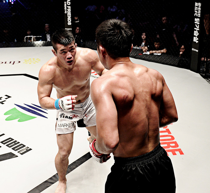 둘은 1라운드 내내 탐색전을 가져같다. 상대와 간격을 두며 공세에 맞받아치는 형세로 싸움을 몰고 갔다. 라인재가 조금 더 공격성을 보였고, 최영은 케이지를 돌며 노련하게 경기 운영을 했다. 비슷한 양상이 2라운드까지 전개됐다.