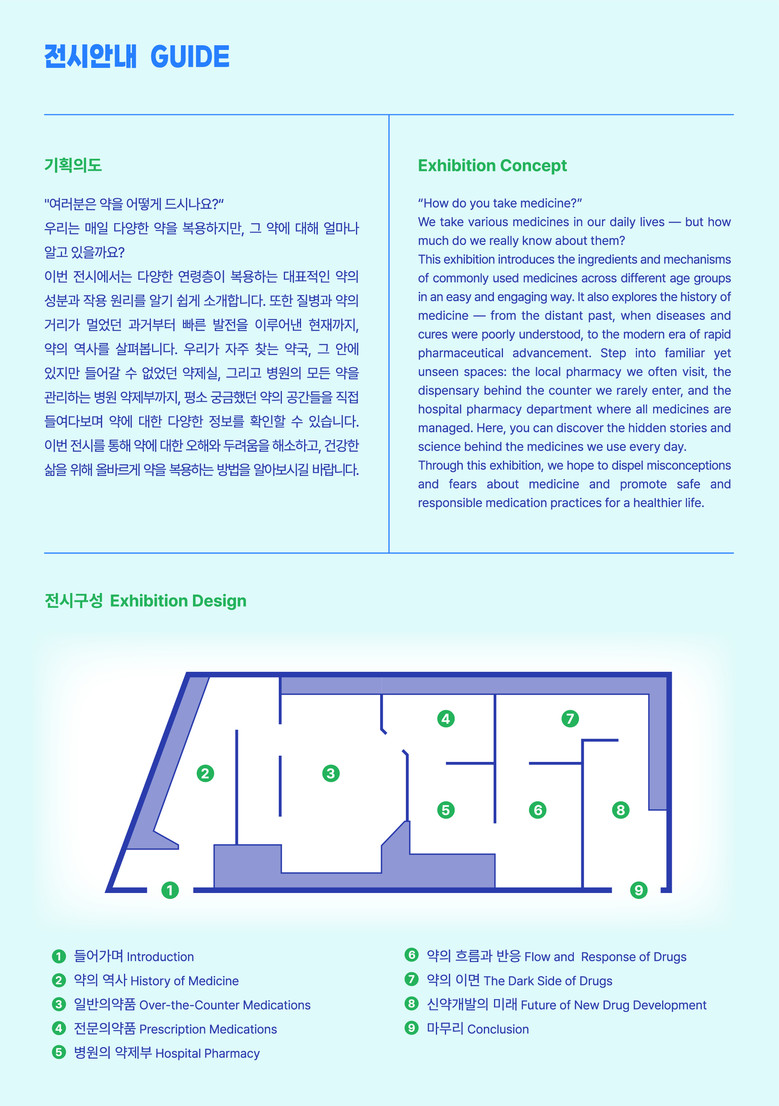 전시는 사전 설문조사에서 시민들이 가장 궁금해한 주제인 일반의약품, 부작용, 조제 과정, 약의 작용 메커니즘 등을 중심으로 구성됐다.
