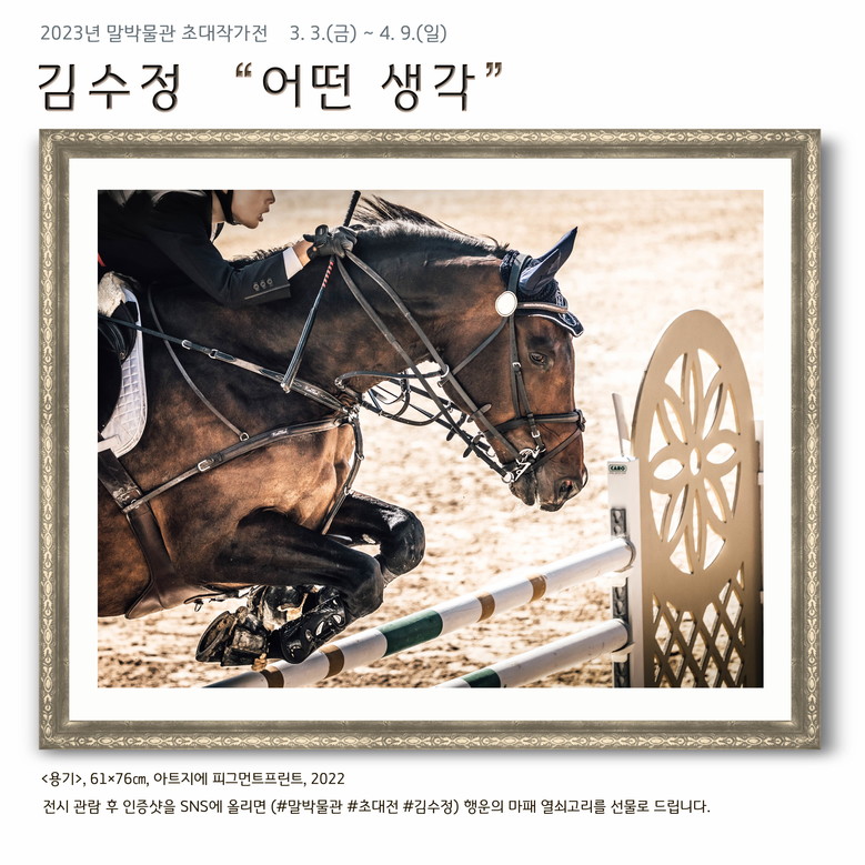 대한승마협회 공식작가로 활동 중인 김수정 작가는 이번 말박물관 초대전을 통해 말의 감정을 엿볼 수 있는 사진작품 16점을 최초로 선보인다.