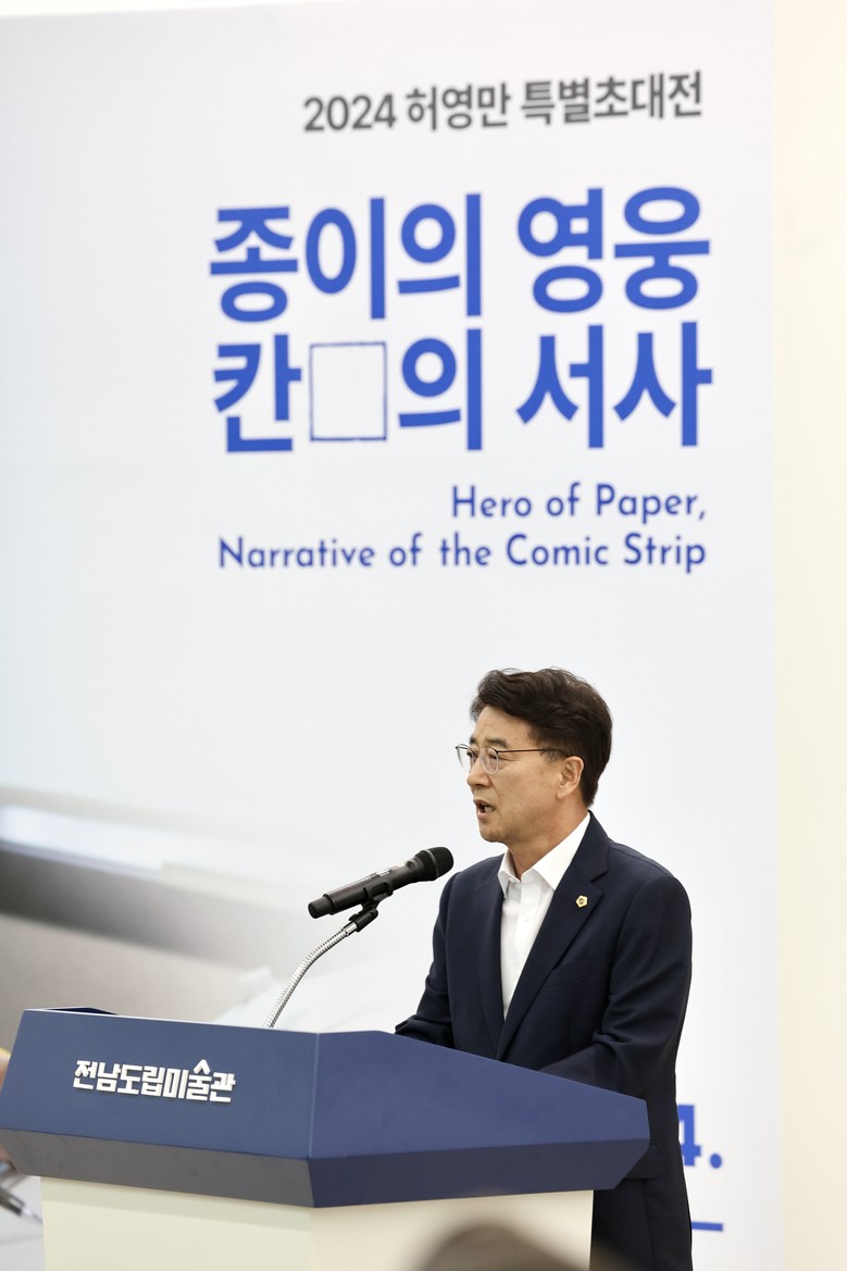 [전남 세계타임즈=우덕현 기자] 전라남도의회 김태균 의장은 8월 6일 오후 3시 전남도립미술관에서 개최된 ‘허영만 데뷔 50주년 기획전시’ 개막식에 참석했다.
