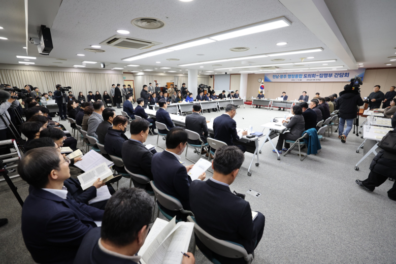 전라남도의회는 지난 1월 19일 도의회에서 김영록 전라남도지사와 김대중 전라남도교육감이 참석한 가운데 ‘전남·광주 행정통합 도의회–집행부 간담회’를 열고, 통합 추진 과정에서의 주요 쟁점과 제도적 과제에 대해 논의했다.