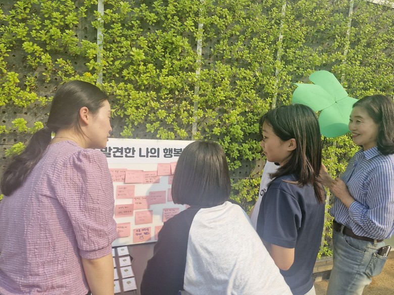 | ▲ Lucky Happy 캠페인에 시민들이 참여한 포스트잇 칠판 [사진 제공 = 신천지 광명교회] |