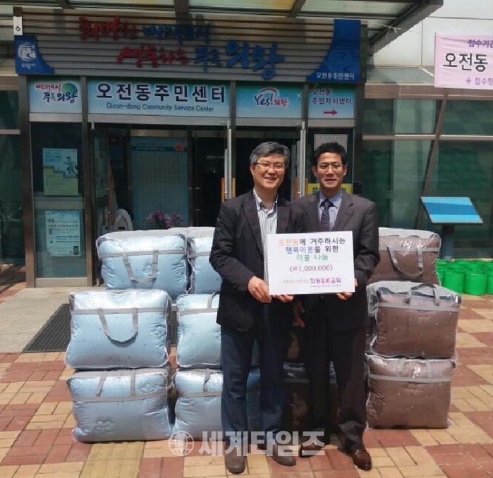 [의왕시=세계타임즈 이영진 기자]의왕우리교회는 지난 25일 독거어르신을 위해 오전동주민센터에 봄이불 13채(백만원 상당)를 전달했다.