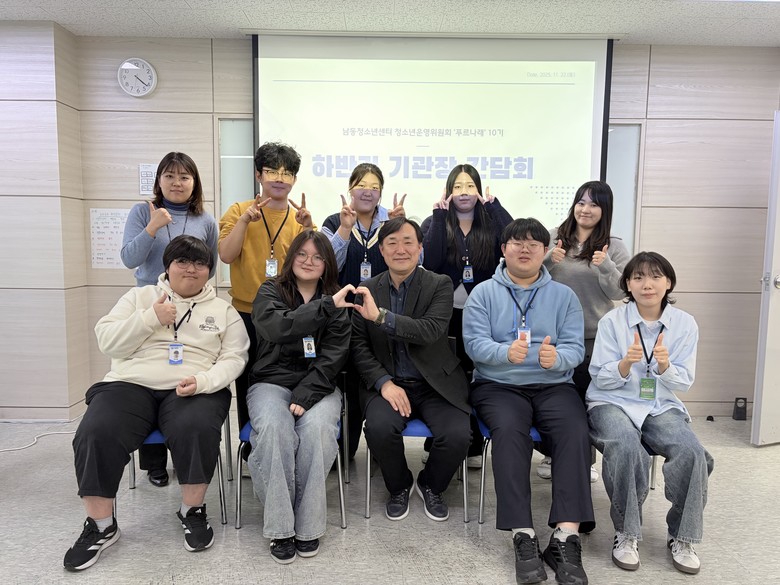 [남동구 세계타임즈=심하린 기자] 인천시 남동구 남동청소년센터는 청소년운영위원회 ‘푸르나래’와 하반기 기관장 간담회를 개최했다고 28일 밝혔다.